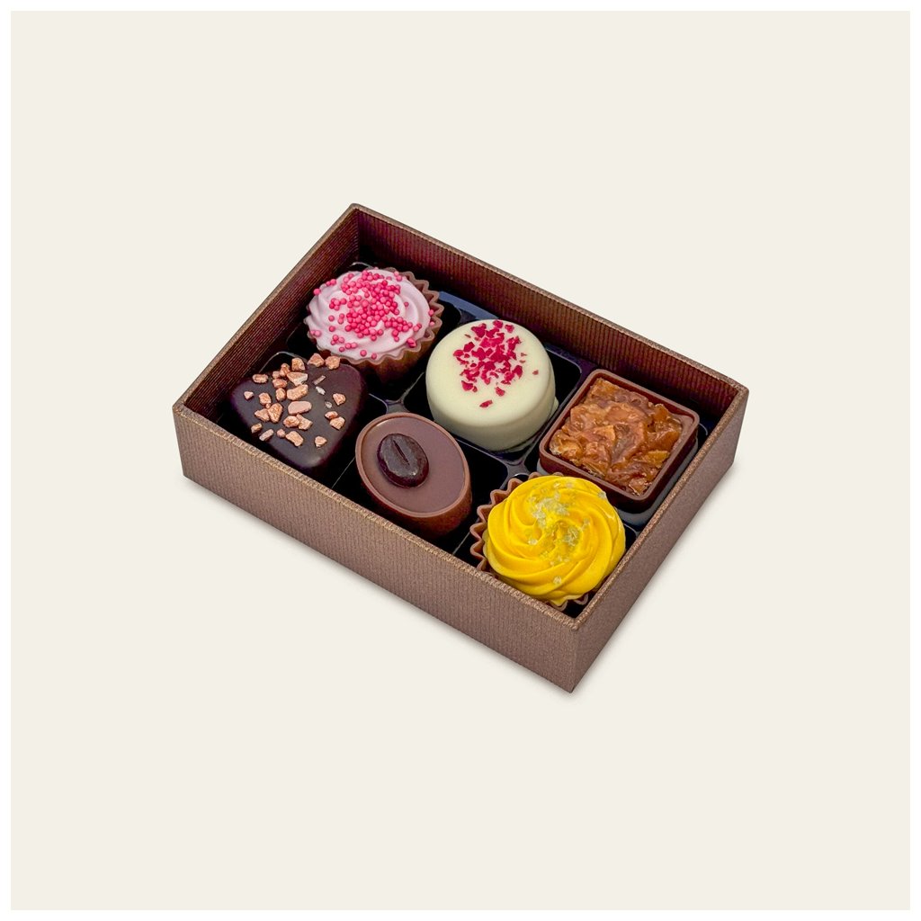 Bonboniéra 6 ks belgických pralinek bronzová 2