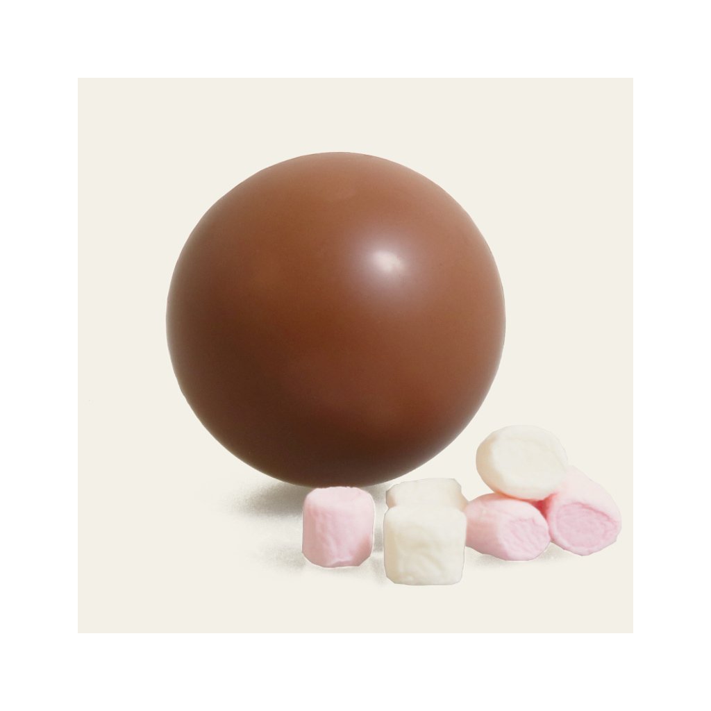 Mléčná čokobomba s mini marshmallows. Naše specialita, která slouží k efektní přípravě horké čokolády. Ohřejete si mléko na 60-70 °C do cca 200 ml hrníčku, poté do mléka ponoříte naši zázračnou čokobombu, která se začne rozpouštět, až se v ní udělá otvor, kterým na hladinu vyplavou malé roztomilé marshmallows. Poté vše rozmícháte na výbornou horkou mléčnou čokoládu. Děti (i dospělí) tuto přípravu milují! Originální dárek.
