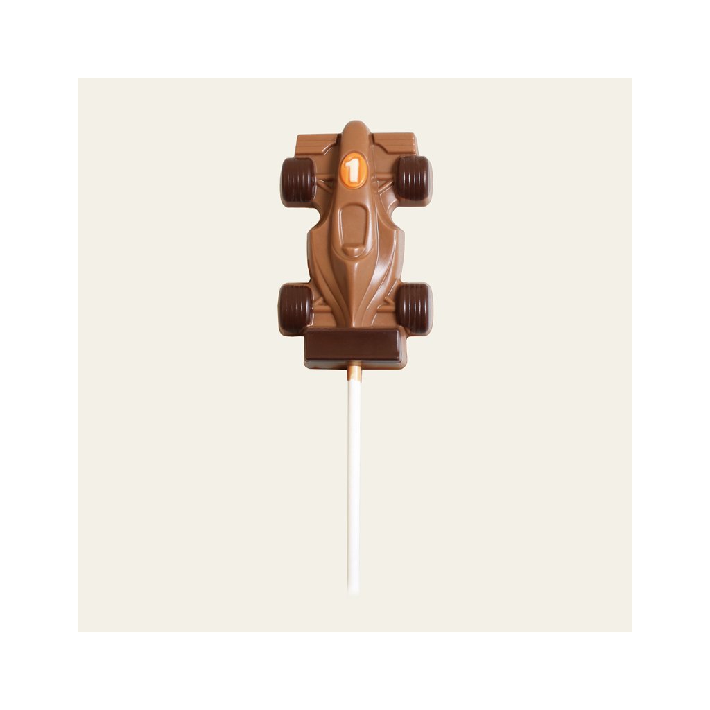 Lízátko ve tvaru formule z kvalitní belgické mléčné čokolády.