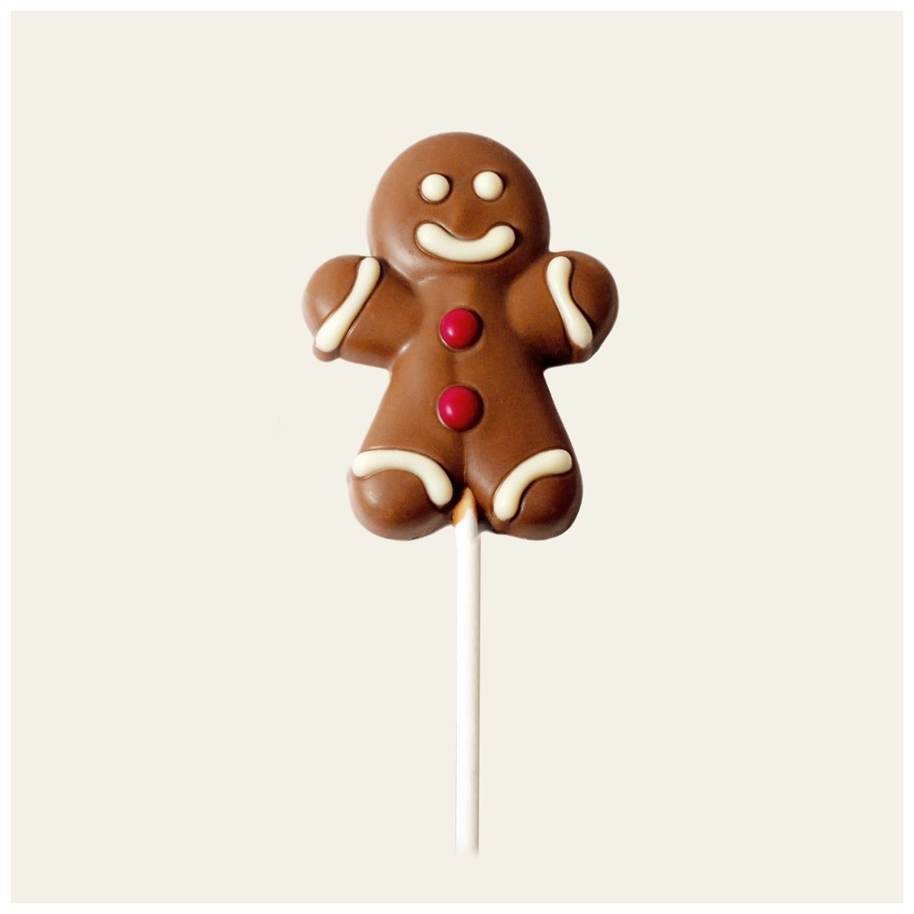 Vánoční lízátko ve tvaru Perníčka z kvalitní belgické mléčné čokolády.