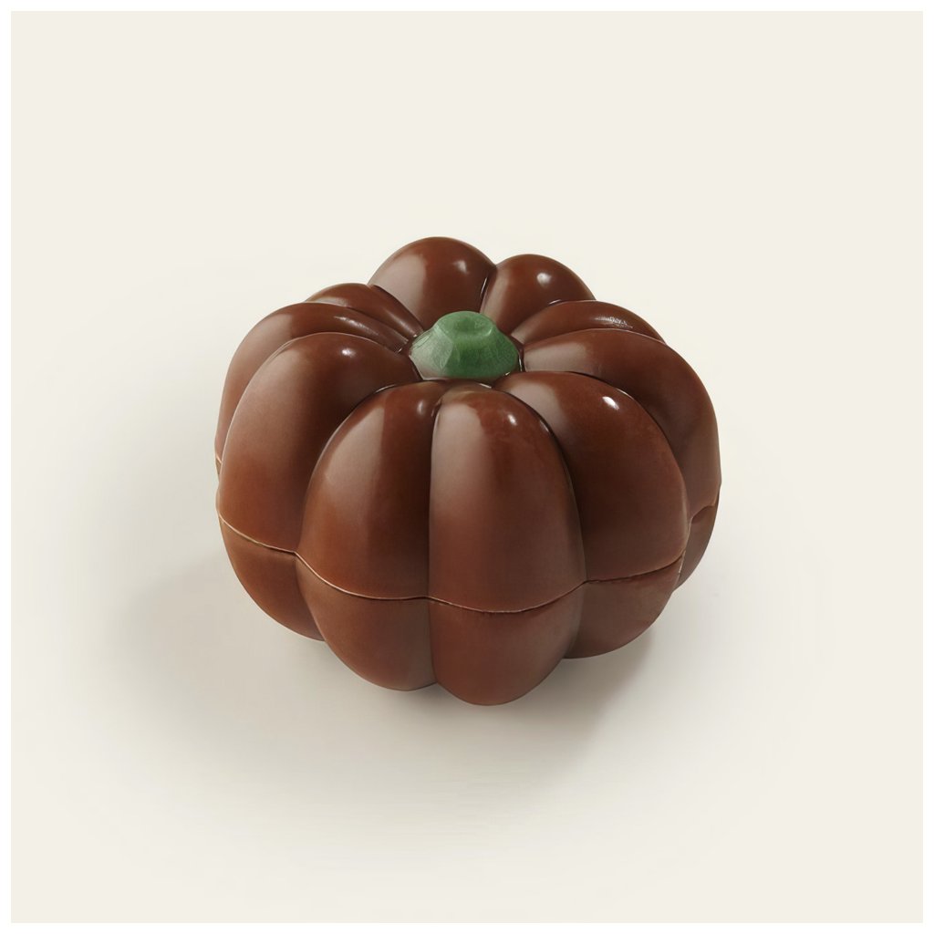 Krásná podzimní pralinka ve tvaru dýně z mléčné čokolády hnědé barvy s lískooříškovým krémem uvnitř. Chuťově velmi oblíbené i u dětí. Krásné dýně, které vypadají jako originál :)