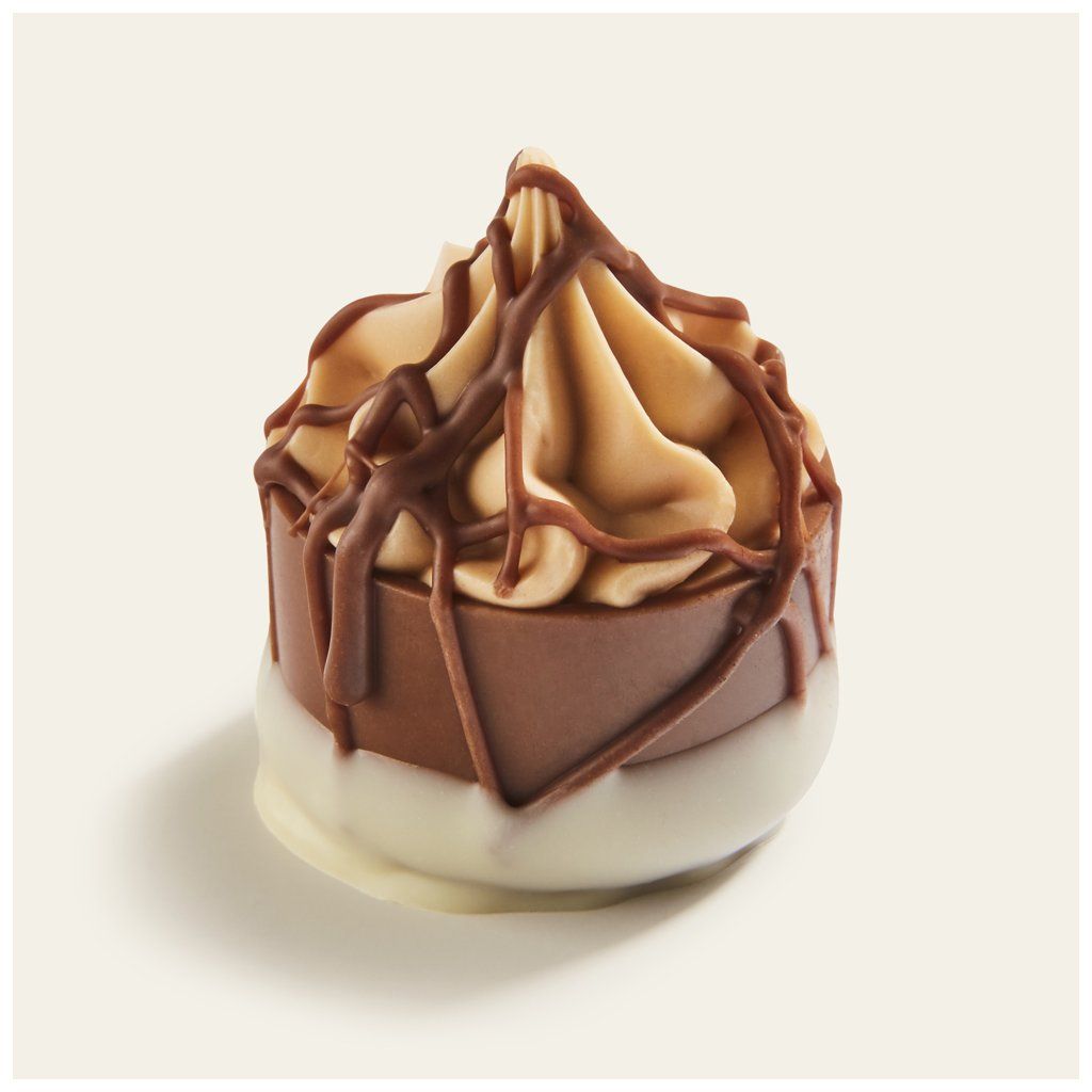 Pralinka s náplní z karamelového dulce di leche s jogurtovým karamelovým krémem.